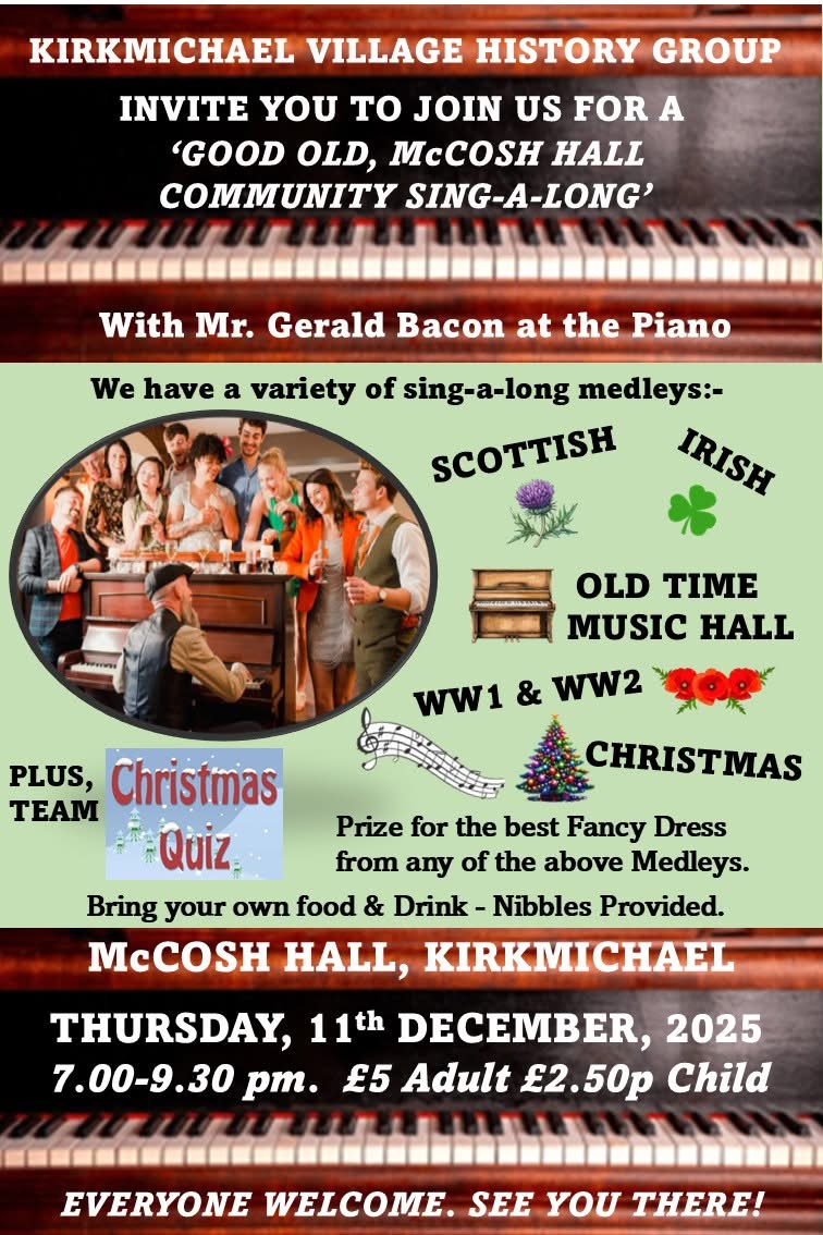 - First Wednesday of the month – Kirkoswald Lunch Club noon until 1.30pm in Kirkoswald Church hall.