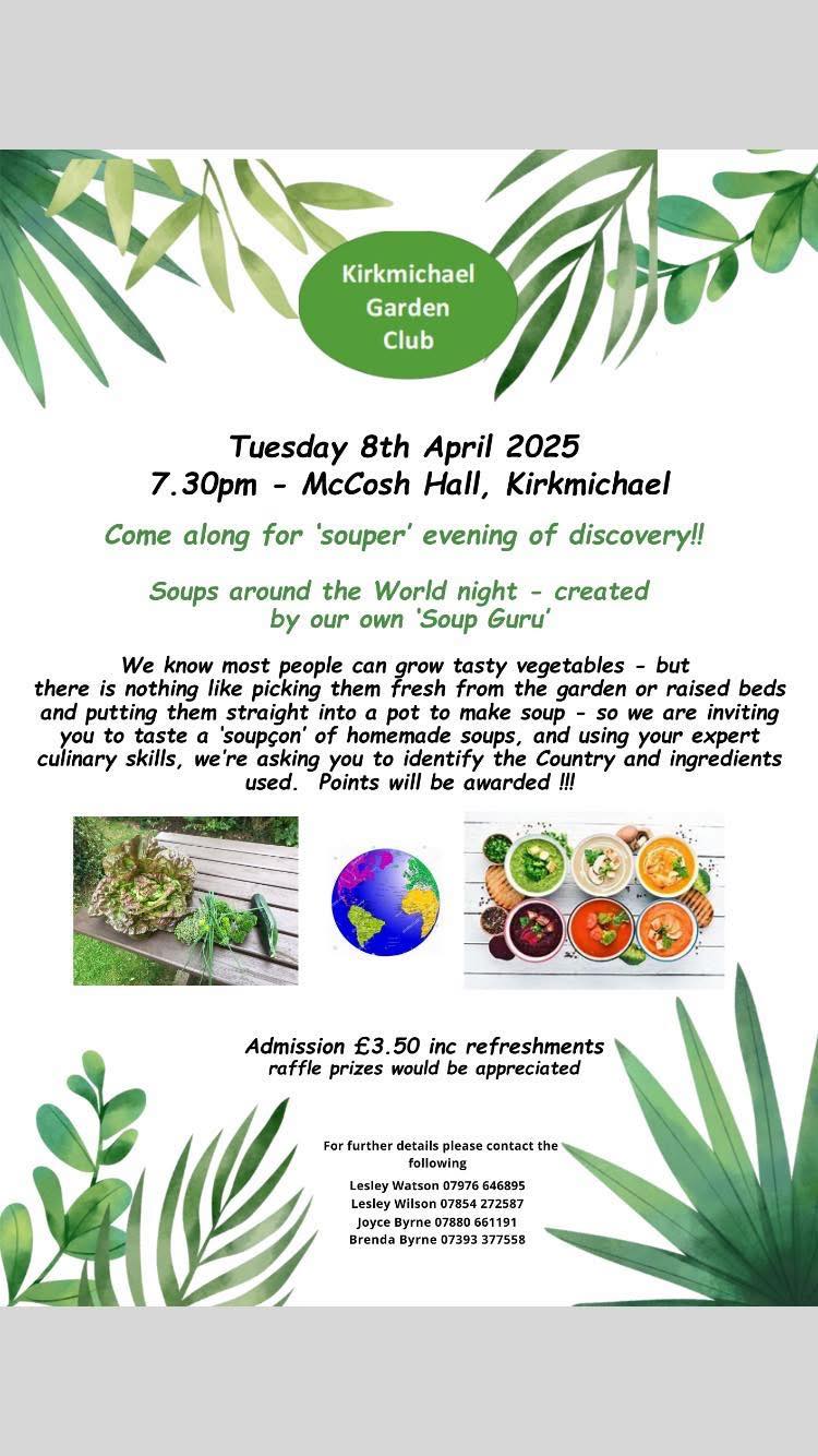 - First Wednesday of the month – Kirkoswald Lunch Club noon until 1.30pm in Kirkoswald Church hall.